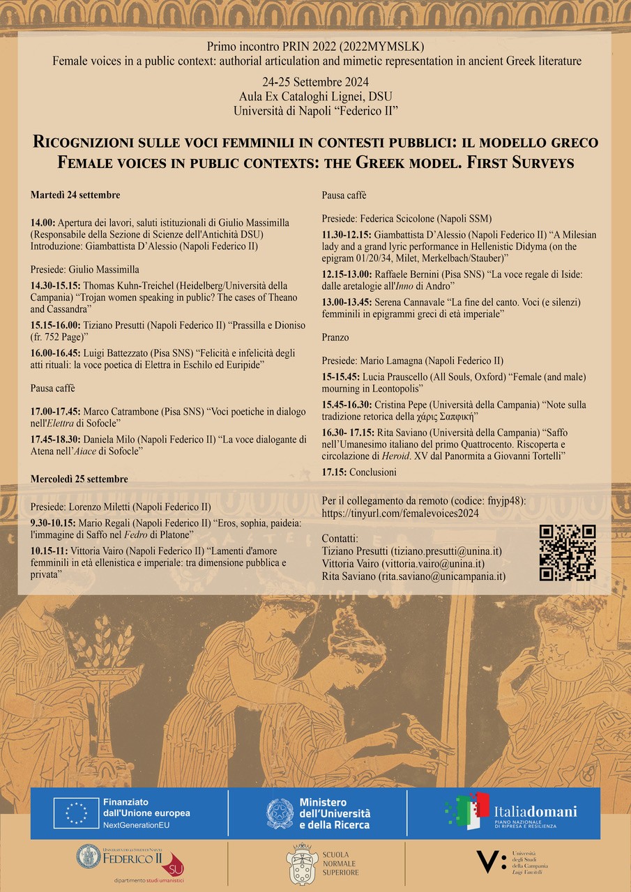 The Seminar intends to offer young scholars in the field of Greek and Latin Philology studies the opportunity to illustrate the results of their research, encouraging discussion within the scientific community.